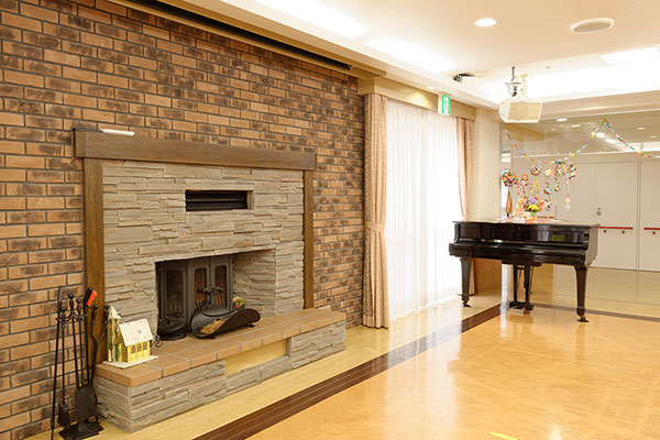 | 暖炉の前にはカラオケ機や、プロジェクターなどが設置され、毎日を飽きさせない工夫がされています。 |