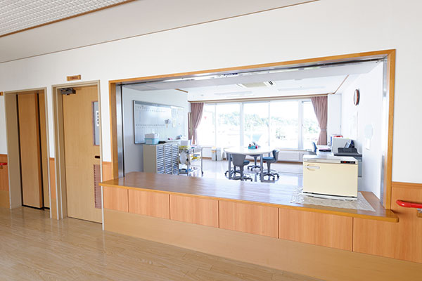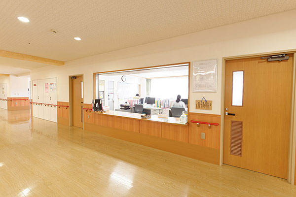 | エントランスとホールに隣接された事務室は入居者と外来者の双方をサポートします。 |